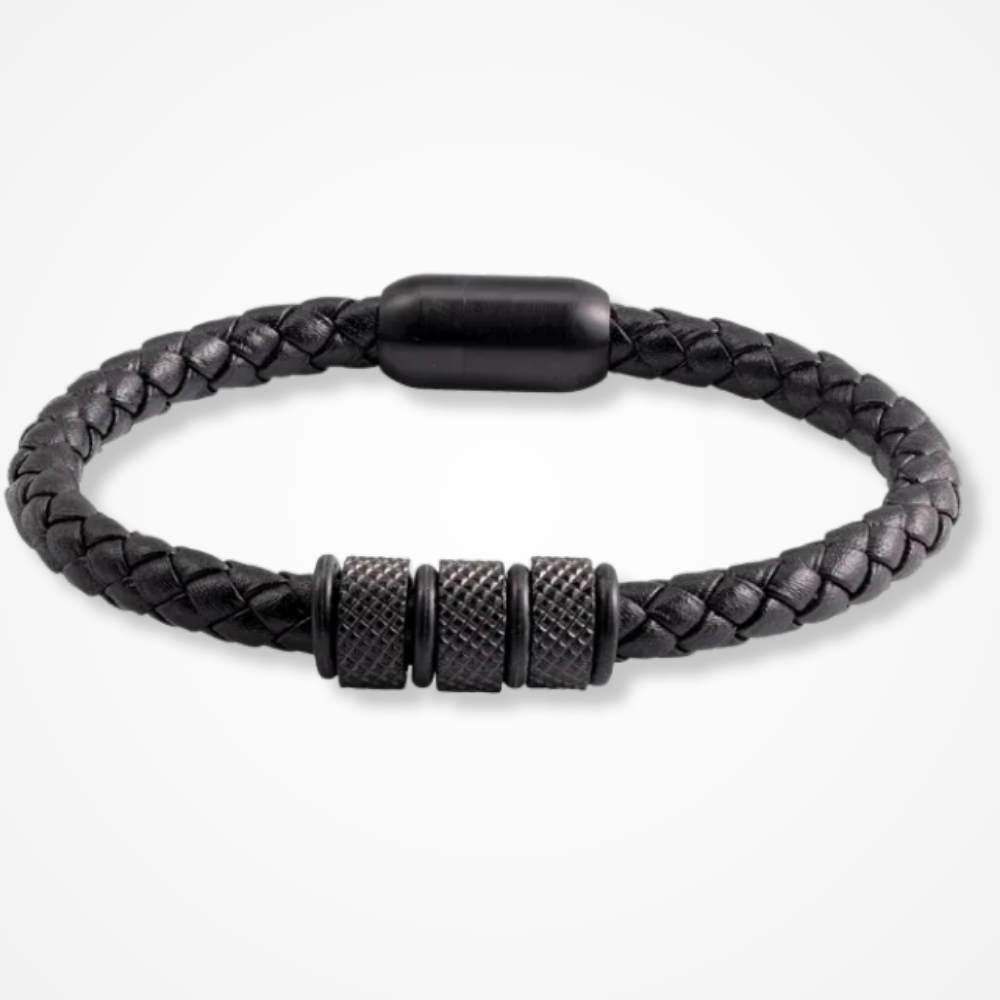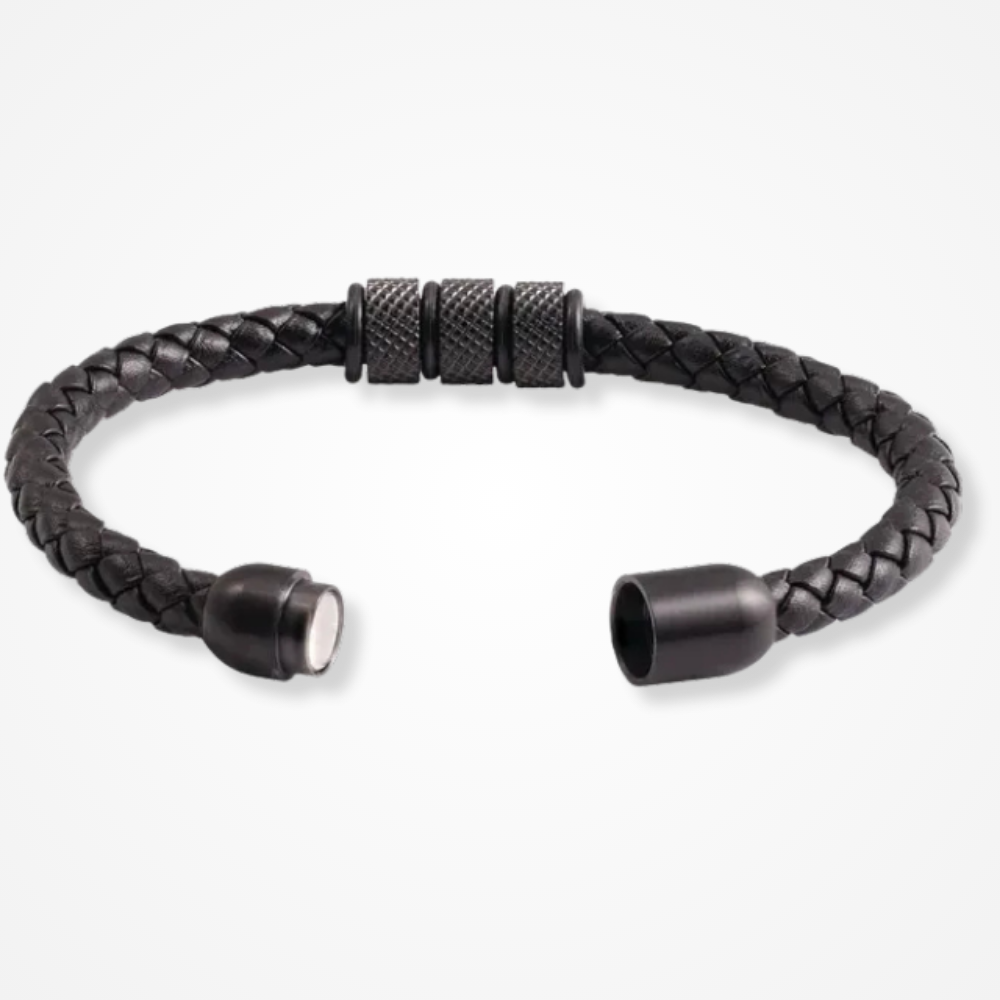 Sleek and modern, this bracelet pairs genuine black braided leather with a brushed stainless steel magnetic clasp for a refined, masculine edge. Designed for effortless wear and all-day comfort, it’s the perfect accessory for both casual and dress looks—subtle, durable, and distinctly sophisticated.